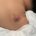 また炎症が起こっている症例では炎症により毛根が死滅してしまっているが、手術時には毛髪だけが残っている場合もあるため、術後から毛がない部位も出てきてしまうことがあります。術後に創部がハゲてしまった場合には再度毛髪のない部位を切除することによりハゲをなくすこともできます。あまりにも毛のない範囲が広い場合には植毛になることもあります。少なくとも術後3ヶ月は様子を診てから手術を考慮するべきだと考えます。