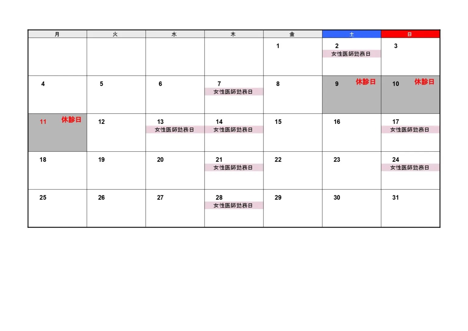 2025年8月 医師出勤日/休診日のお知らせ お知らせ 【休診日】8月9日(土)・10日(日)・11日(祝月) 【女性医師勤務日】AM 10:00~14:00PM 15:00~19:00 2025年7月20日